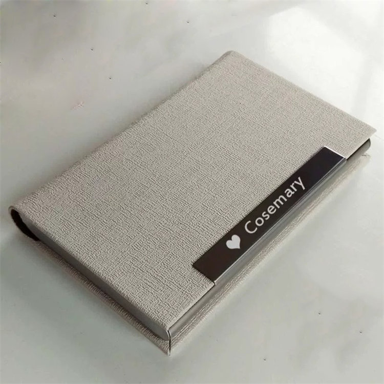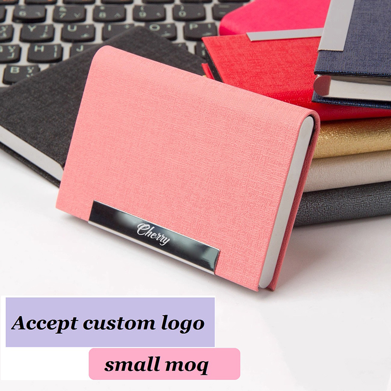 W6114 pu case logo luxury custom women leather stainless steel business card holder