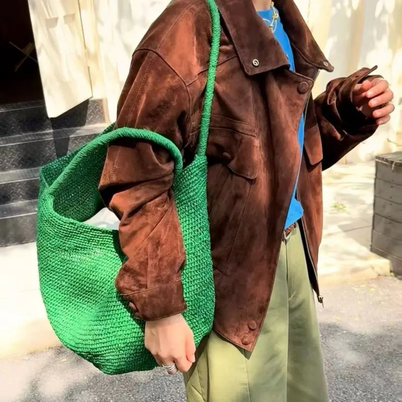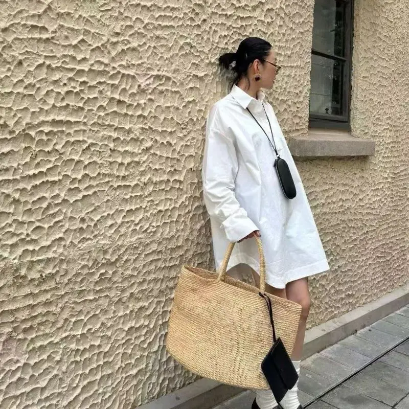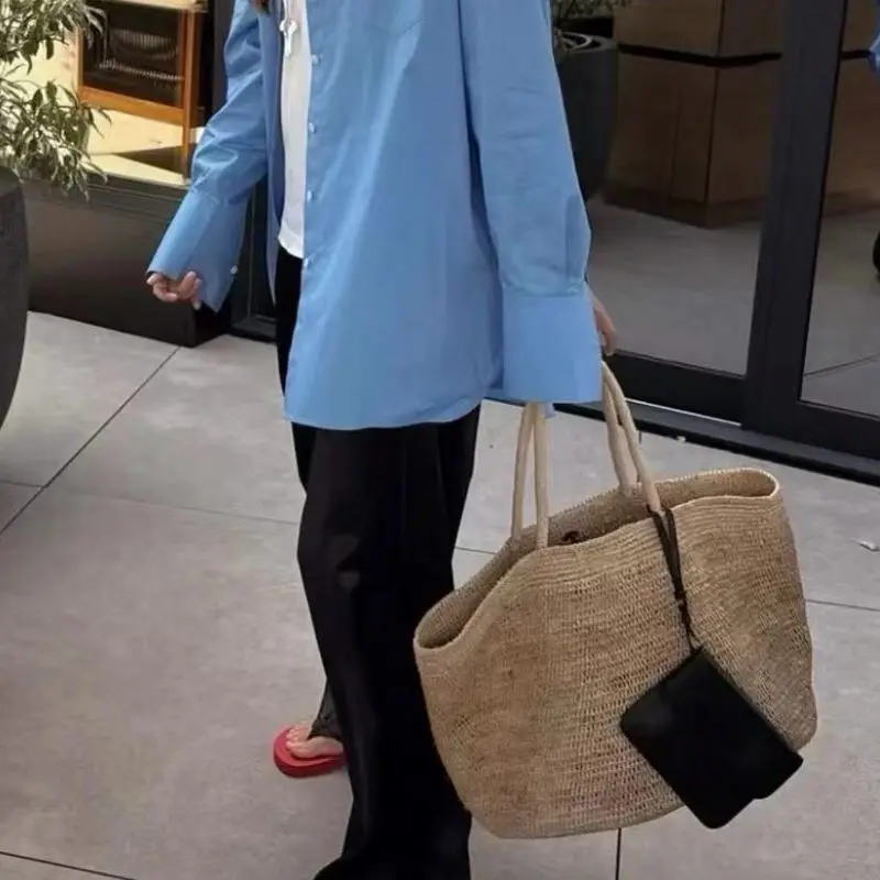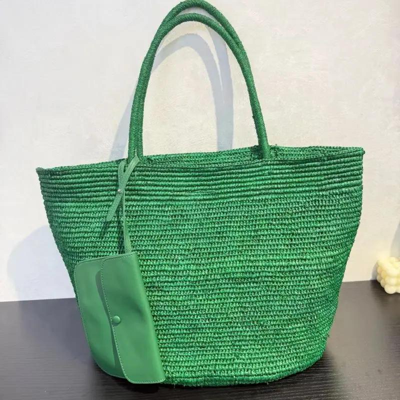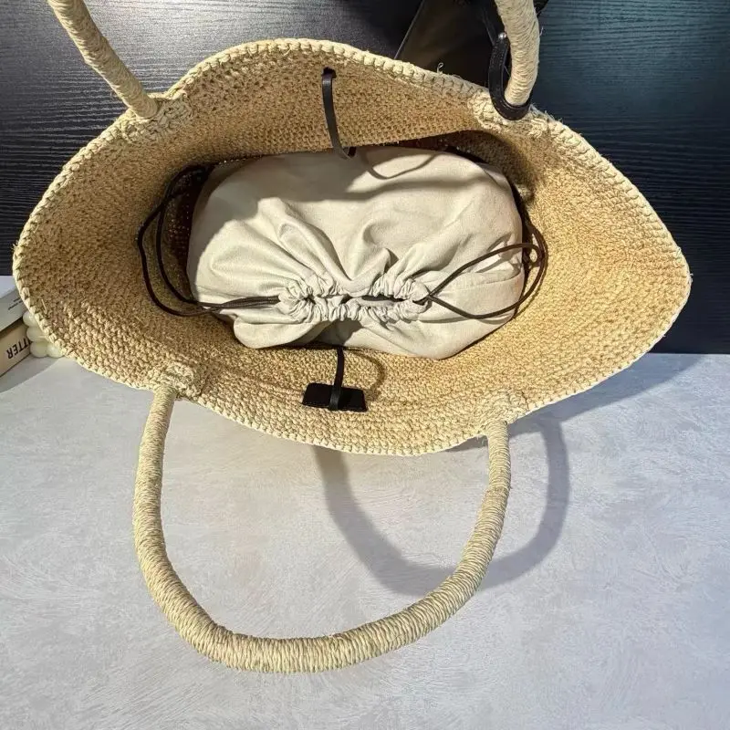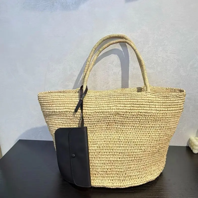 Material:raffia & top grain leather bag