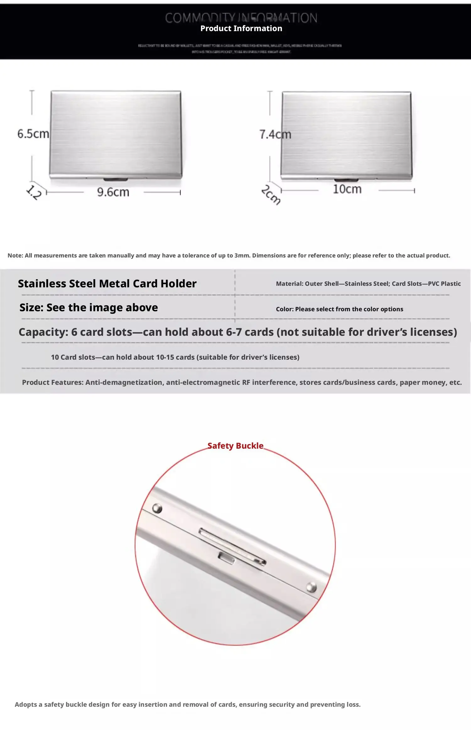 Material: Shell: Stainless Steel, Card Pages: PVC Plastic