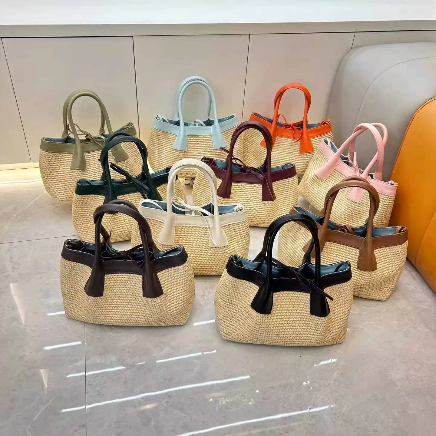 Straw Woven Version 5 colors:Black, Beige, Coffee, Pink, Blue